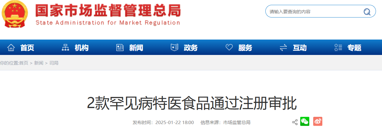 2款罕見病特醫(yī)食品通過注冊(cè)審批